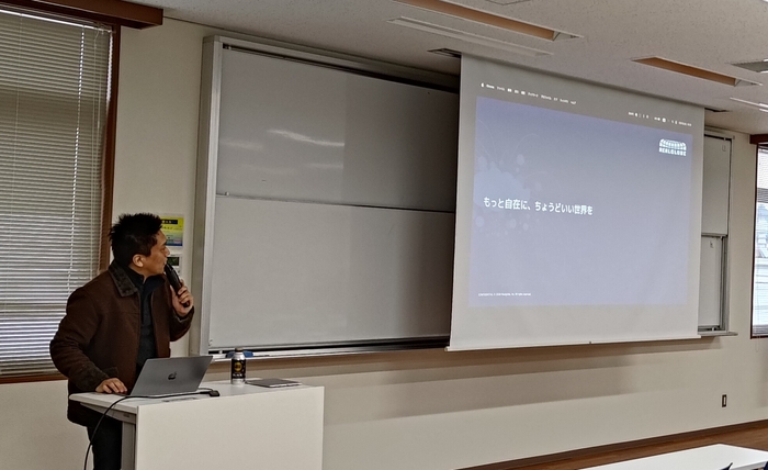 講演内容は大畑が起業経験を通し感じた厳しさや、学生ベンチャーならではの会社の運営・経営の難しさをはじめ、今後、人口減少で縮小していく日本の課題、甚大化していく災害をDX化でどう解決していくのかなどを中心に講演を行いました。