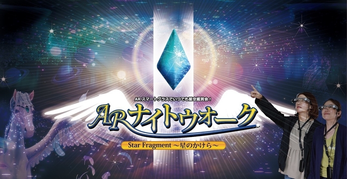 高精度位置情報システム「Quuppa」により、実際の星空とARグラスの星空が融合。浪合パークの遊歩道をスマートグラスをかけながら冒険し、最後にビューイングエリアにて星空解説アプリケーション「癒し星」(システム・サイエンス)で星空鑑賞。第一弾は、星のかけらを探して願いを叶えるストーリー「ペガサスの落とし物」。豊富な天文知識と卓越したアートセンスで世界の人々を魅了する、宇宙と神話の世界を描くアーティストのKAGAYA氏によるキャラクターデザインと、囁くように語るように聴く人を包み込む歌声を持つシンガーソングライター、illy(イリィ)氏による楽曲提供とナレーションで、幻想的な星空体験を楽しむことができます。