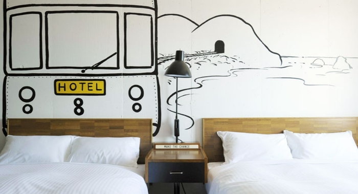 8HOTEL藤沢は、お部屋で過ごすのが楽しくなるような、クリエイターがペイントを施したお部屋をご用意。