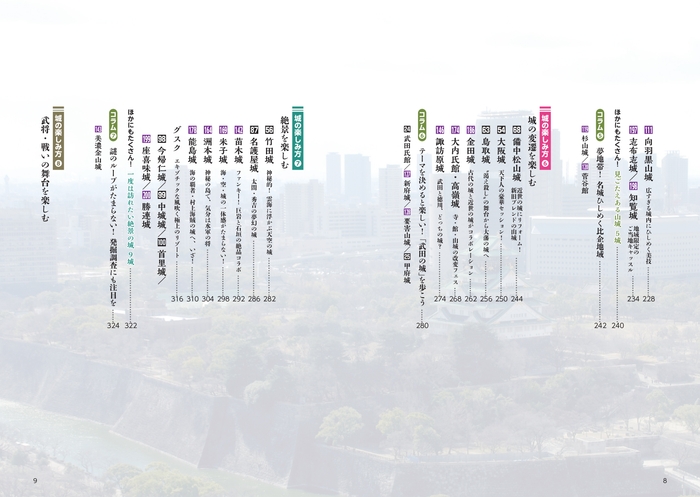 楽しみ方のポイントや歩き方のコツなど、全国の城を知り尽くしたお城めぐりのスペシャリストならではの情報が満載。