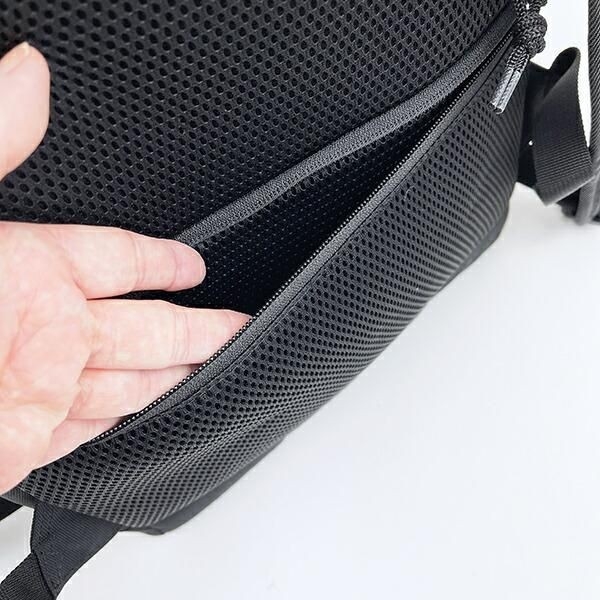 背中は通気性の良いメッシュ素材で、さらに
