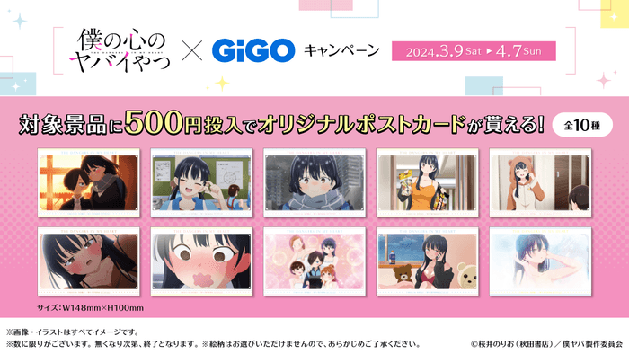 株式会社GENDA GiGO Entertainment(本社:東京都港区 代表取締役社長:二宮 一浩 以下、当社)は、GiGOグループのお店におきまして2024年3月9日(土)より、アニメ僕の心のヤバイやつ×GiGOグループのお店キャンペーン」を開催いたします。