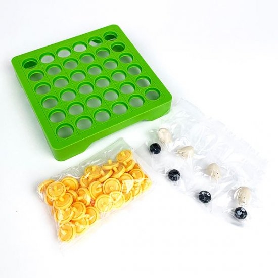 穴の開いたボードと、コマがセットになっています。コマは台座の両面にセットするだけで完成です。