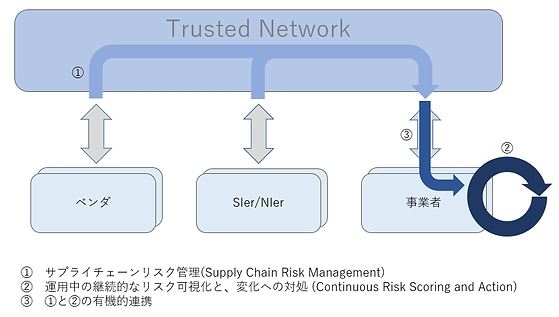 「Trusted Network エコシステム」は、日本の基幹インフラを構成する製品の安全性向上とサイバー攻撃リスクの継続的監視・軽減のシームレスな連携により、「経済安全保障推進法」(*1)対応を含めた社会課題解決を実現するため、業界横断的に先進的な取り組みや標準技術を掛け合わせたオープンな「協創」を推進することを目的に立ち上げられました。