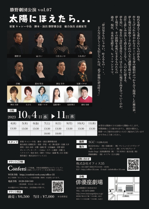 オフィス35主催、勝野劇団 vol.07『太陽にほえたら』が2023年10月4日 (水) ~2023年10月11日 (水)に俳優座劇場(東京都港区六本木4-9-2)にて上演されます。