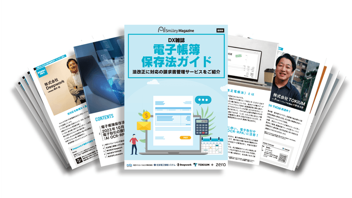 企業のDXを推進する国内最大級のAIポータルメディア「AIsmiley」を運営するアイスマイリー(東京都渋谷区、 代表取締役:板羽晃司)は、電子帳簿保存法改正に伴いAIを活用した請求書管理サービスを紹介するDX雑誌「電子帳簿保存法ガイド」を2022年8月16日に公開致しました。