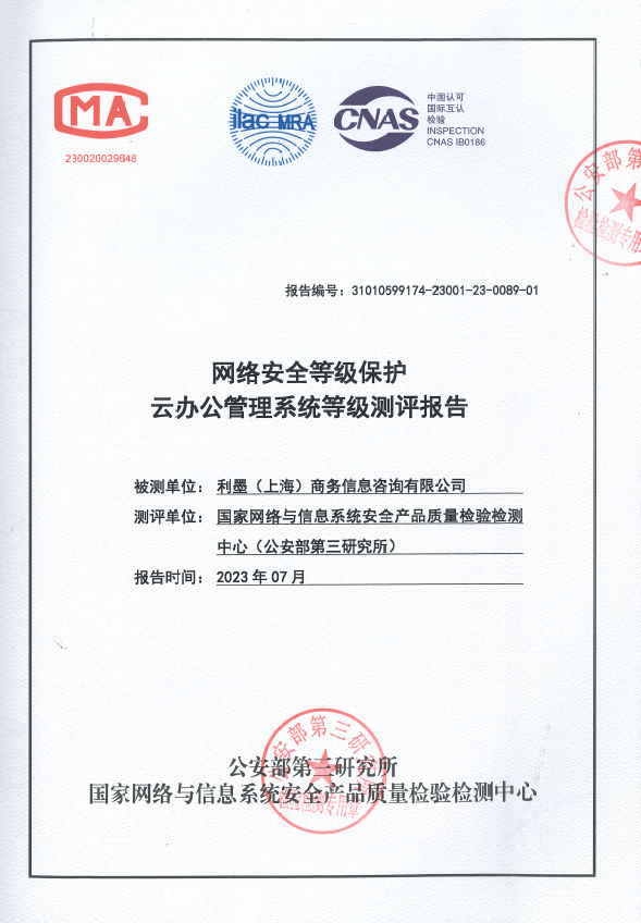 法人会員向けに与信管理クラウドサービスを提供するリスクモンスター株式会社(本社:東京都中央区、代表取締役社長:藤本 太一)は、連結子会社である利墨(上海)商務信息咨詢有限公司(以下、「リスクモンスターチャイナ」)が2023年7月に中国の国家規格である「国家情報安全等級保護二級」を取得しましたので、お知らせいたします。