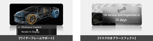 ワイヤーフレーム表示をサポートしました。通常表示とワイヤーフレーム表示を直感的に切り替えることができます。ワイヤーフレームをアセットとして出力可能です。