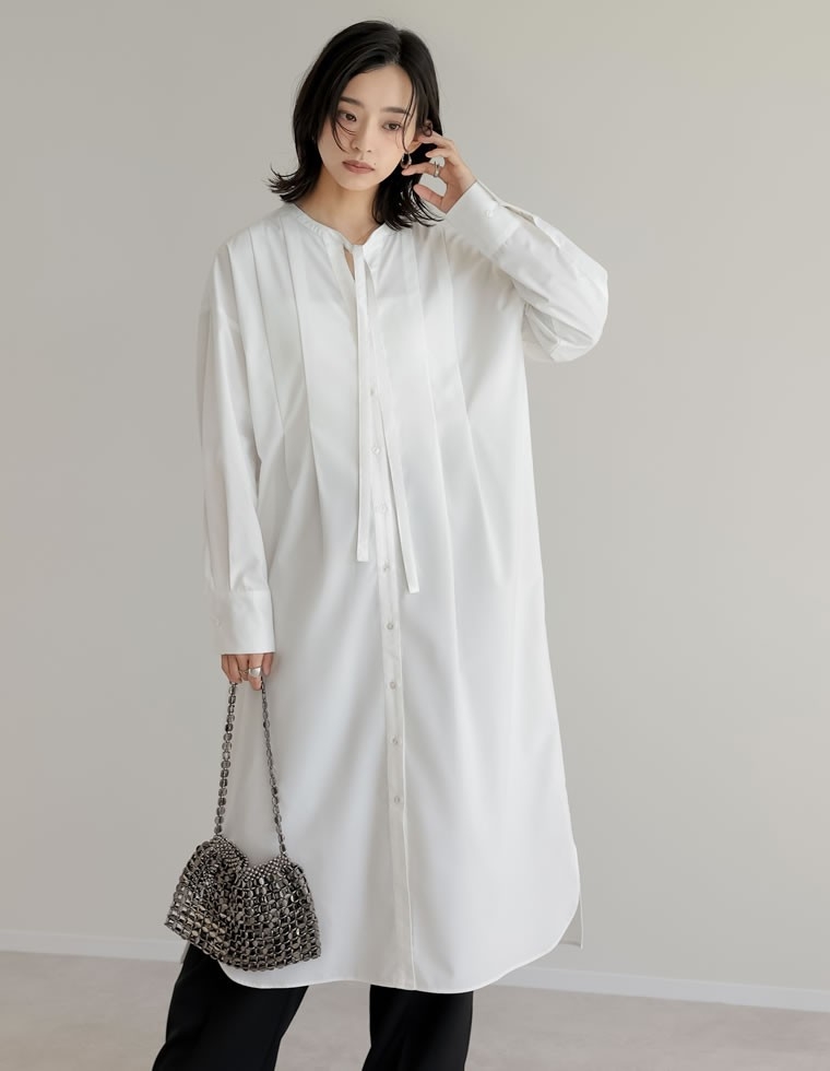 360度きれい見えするタックデザインや、フロントのリボンなど、細部にこだわったシャツワンピースが登場。