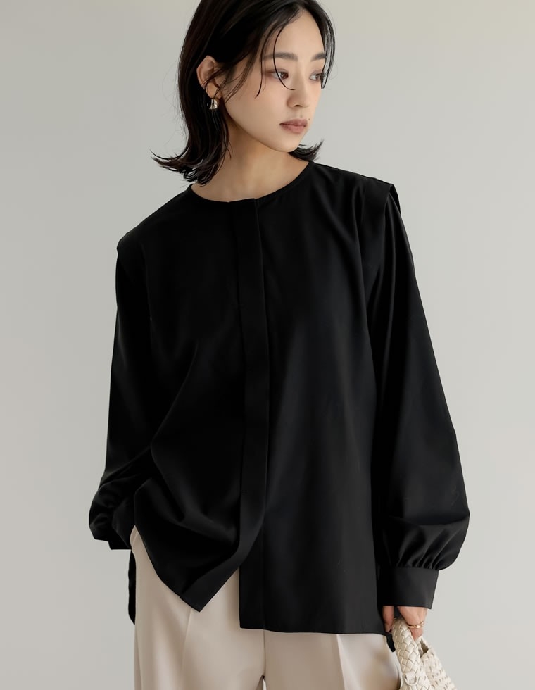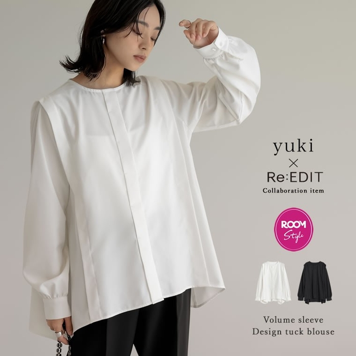 [yukiコラボ][ROOMコラボ]ボリュームスリーブショルダータックブラウス