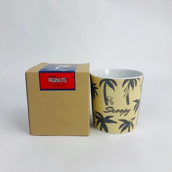 ヤシの木に登ったり、寄っかかったりしているスヌーピーが一面に描かれています。くすみ感のあるイエローがレアですよね。