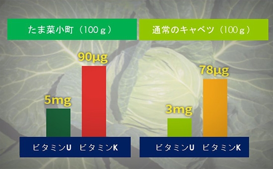 特にビタミンUは一般的なキャベツの1.6倍。ビタミンKも豊富です。