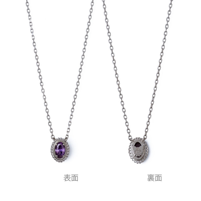 大ぶりなパープルのストーンに繊細なレースをあしらい、クラシカルに仕上げました。