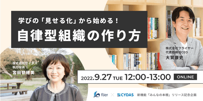 2022年9月27日(火)、株式会社サイダスと株式会社フライヤーは、ウェブセミナー「学びの『見せる化』から始める!自律型組織の作り方」を共同で開催します。
