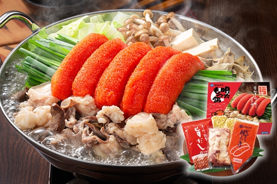 かねふく直営の名店「築地ふく竹」の大人気メニュー。国産牛もつと明太子の贅沢な組み合わせはご家族みんなで楽しめます。〆はちゃんぽんとチーズリゾットがおすすめ。これからの寒い季節にぴったりの商品です。
