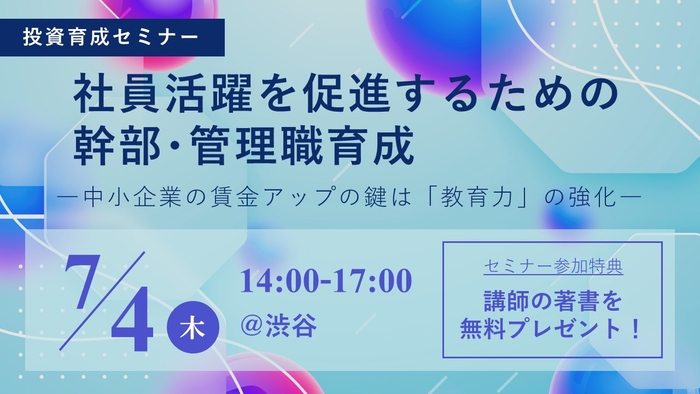 【〆切間近】7月4日(木)、東京中小企業投資育成株式会社の主催にて「社員活躍を促進するための幹部・管理職育成」セミナーが開催されます!