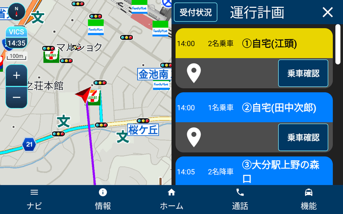 今回、広島市戸坂地区で運行するデマンド交通「ともいきタクシー」に導入した「デマンド交通向け業務管理システム」はこれまでの機能からデマンドモードに切り替えることで、予約管理や運行計画作成、ルート作成、帳票作成など情報の一元管理を実現。手作業でのスケジュール調整や配車計画作成の手間を軽減するとともに、乗務員側のタブレットには運行計画やルート表示機能などを備え、シンプルで直感的な仕様により誰でも簡単に操作できます。