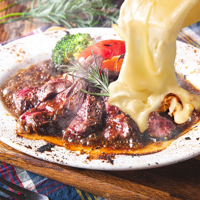 使用するチーズは、北海道根釧地区を中心に、スイス産、イタリア産など全12種類。ディナータイムには、SNS映え間違いなし「クワトロシカゴピザ」(1,680円)、自家製ローストビーフに本場スイスのラクレットチーズをたっぷりとかけた「ラクレットチーズグリル」(2,180円)など、全45種のチーズを使用したメニューを取り揃えております。