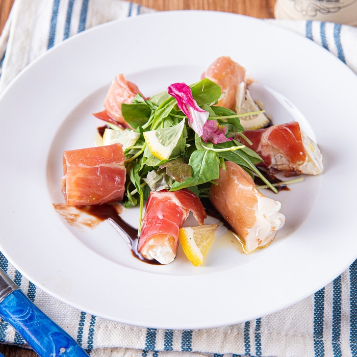 インパクトのある白いワッフルは、1枚ずつ店内で焼きあげる自家製ワッフルです。北海道産マスカルポーネチーズと生クリームをバランスよく配合し、仕上げにすっきりとした甘さの「北海道産の生はちみつ」と一緒に包みました。「ふわっもちっ」が楽しい新食感と、甘じょっぱい掛け合わせをぜひお楽しみください。