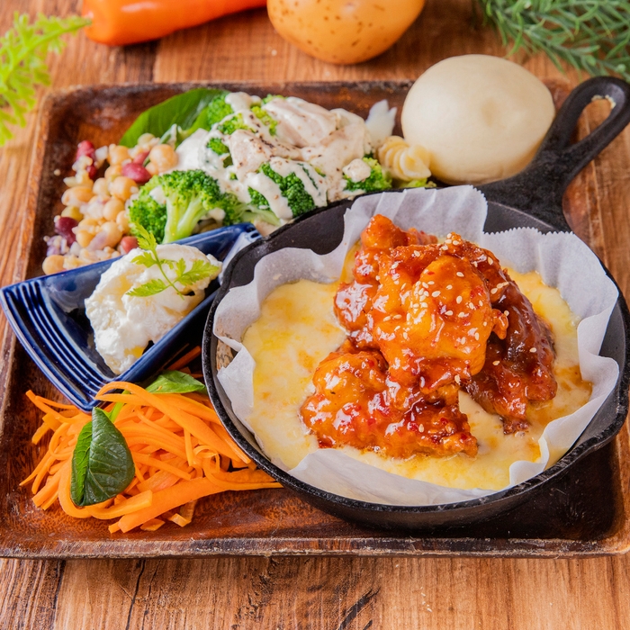 女性で賑わうランチタイムは、選べるワンプレートランチをご用意しております。選べるメインは「マグマチーズヤンニョムチキン」や、希少部位の「カイノミステーキ」など全5種からお選びいただけます。