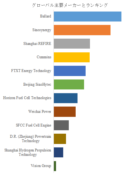 LP Informationによれば、2024年時点で世界の商用車用水素燃料電池エンジン市場において、上位10社が売上ベースで約86.0%のシェアを占めている。主要企業にはBallard、Sinosynergy、Shanghai REFIRE、Cummins、FTXT Energy Technology、Beijing SinoHytec、Weichai Power、Horizon Fuel Cell Technologies、SFCC Fuel Cell Engine、D.R. (Zhejiang) Powertrain Technologyなどが名を連ねている。これらの企業は、水素燃料電池の設計からシステム統合に至るまで高度な技術力を有し、グローバル市場での競争を主導している。特に中国は政府支援と産業クラスター形成を背景に強力な成長を遂げており、欧米企業は技術の信頼性と国際的パートナーシップを武器に競合している構図である。市場は寡占化が進む一方で、周辺技術やインフラ事業者との連携が収益拡大のカギを握っており、燃料電池スタック供給から車両メーカーとの共同開発に至るまで、垂直統合と横断的な提携が加速している。