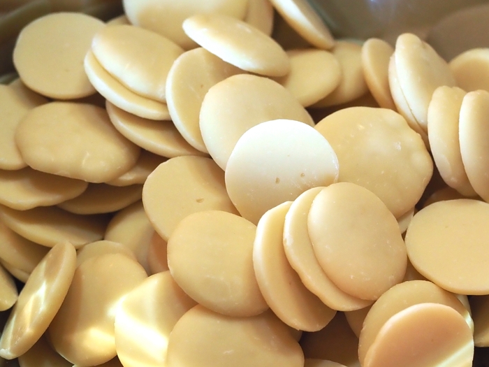 乳化剤を使わず「カカオバター」「粗糖」「全粉乳」のみで作られた、カカオ分40%のホワイトチョコレート。