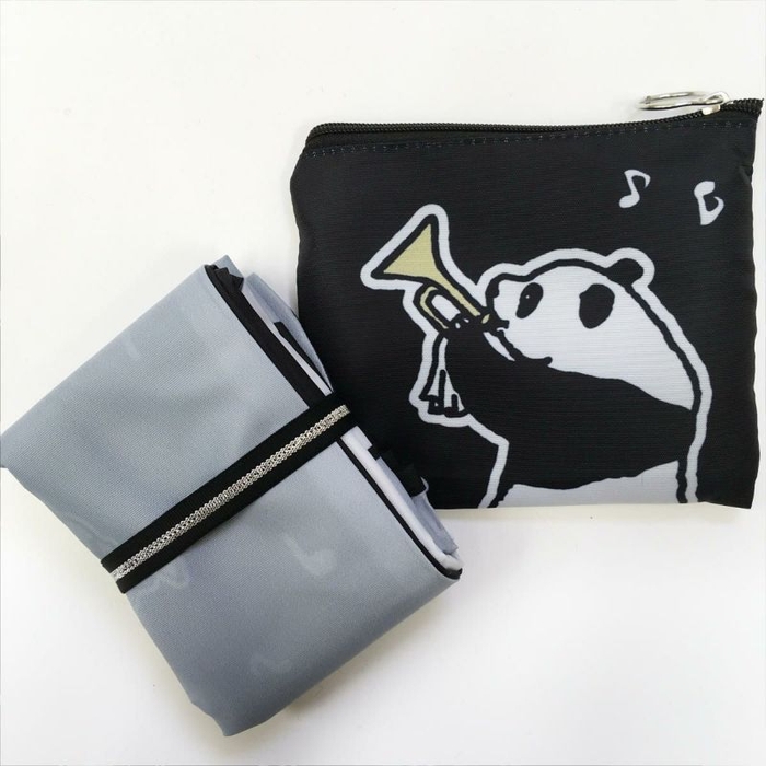 大きな荷物も入るビッグサイズのエコバッグもコンパクトに折り畳んで専用ポーチに収納可能。そのままバッグに忍ばせたり、収納ポーチのリング部分をカラビナに掛けるなどして携帯することもできる。