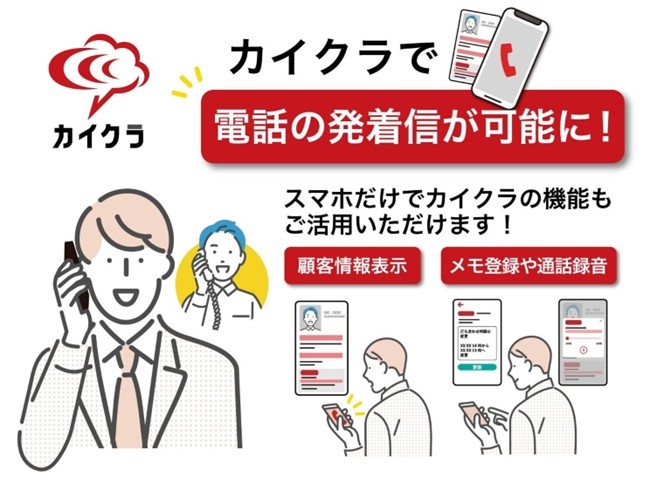 コミュニケーションプラットフォーム「カイクラ」の開発・販売を行う株式会社シンカ(本社:東京都千代田区、代表取締役社⻑CEO 江尻 高宏、以下、「シンカ」)は、2025年1月27日より「カイクラ」上で電話を直接発着信できる 『カイクラフォン』の提供を開始します。『カイクラフォン』は、インターネットを通じて電話の発着信を「カイクラ」上で直接行えるクラウド電話の機能であり、機器を設置しなくても利用可能なサービスです。これにより、「カイクラ」上で電話の発着信が直接可能となり、全国あらゆる中小企業の電話のクラウド化及びクラウド化による業務効率化を加速することが期待できます。