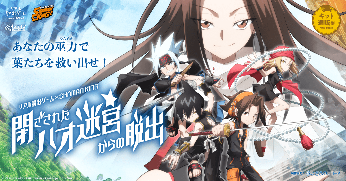 大人気アニメ『SHAMAN KING』とのコラボレーションした『閉ざされたハオ迷宮からの脱出』は、謎解きキットを購入すればいつでもどこでも楽しめる、オンラインで遊べるリアル脱出ゲームの最新作です。