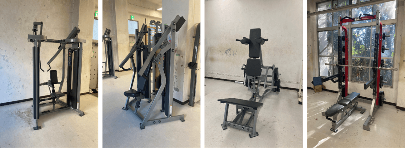 寄贈品:GBスクワット・ランジ、アジャスタブル・ベンチ 6台、フラット・ベンチ、ハーフラック、MTSロー、MTSチェスト・プレス、PL V-スクワット ※いずれもLIFE FITNESS社製