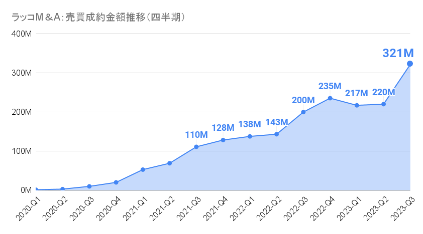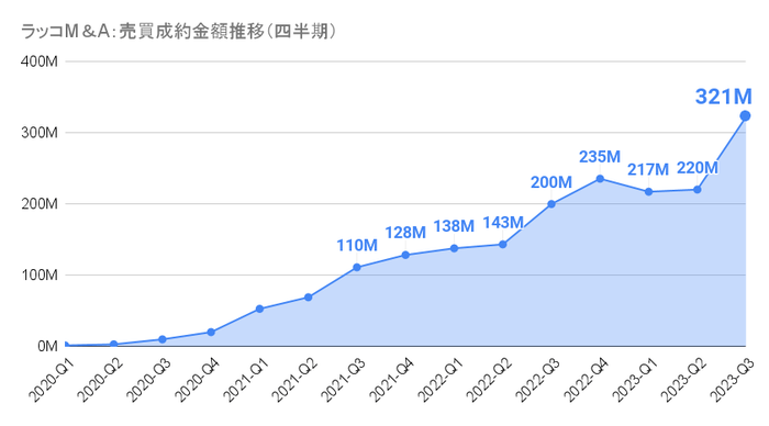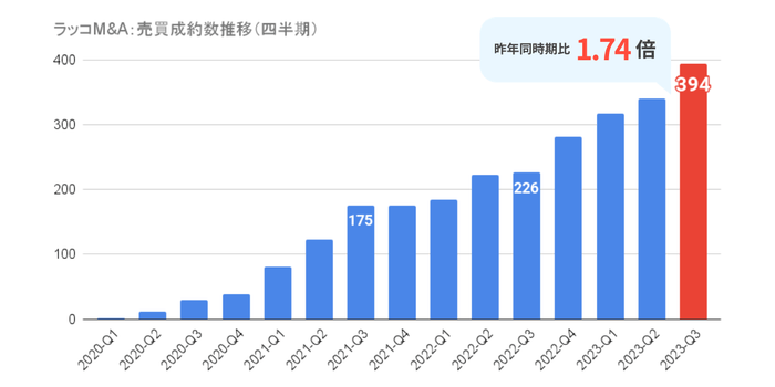 【ラッコM&A】2023年7-9月期実績:成約金額3億円突破。成約数は394件で過去最高を記録
