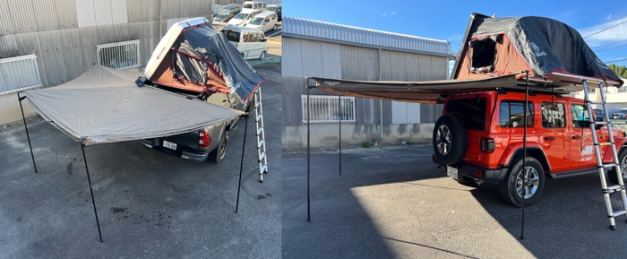 オーバーランダーの4台は、全てにルーフトップテント、270度のオーニングを装備し、オートキャンプ場などですぐにベース基地を確保できます。
