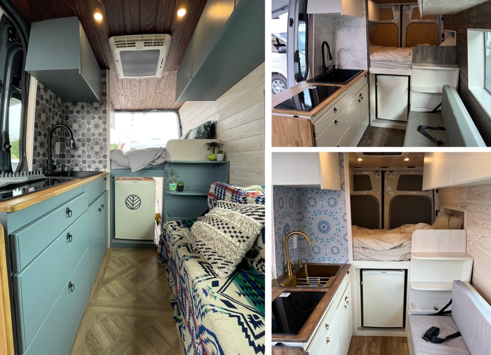 ベンツスプリンターは、3台で架装テーマが異なり、まるで欧米のようなスタイリッシュでおしゃれな居住空間を演出しています。