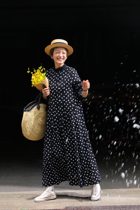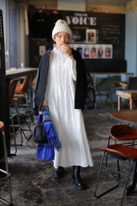 高山都さんが着こなすコラボワンピースのスタイルサンプルを、