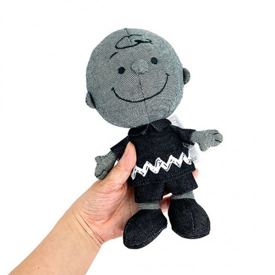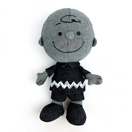 みるからにデニム生地がオシャレな、チャーリーブラウンのぬいぐるみです。