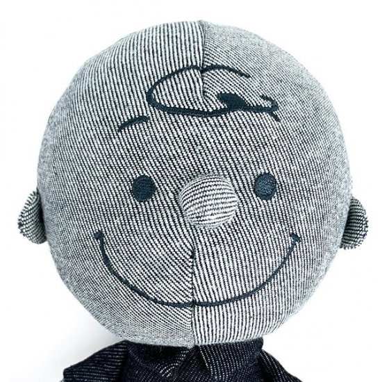 お顔や手足は、デニムの裏生地。洋服はインディゴカラーの表生地で作られています。Tシャツにはおなじみのギザギザ模様も再現されていて、いつもより上品な印象のチャーリーブラウンに仕上がっています。
