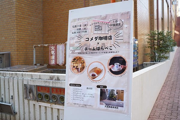 2024年12月3日、10日の2日間、1限が始まる前の名城大学の一角にいつもと違う景色が。東海圏ではみんなおなじみの「コメダ珈琲店」のキッチンカーの前に、たくさんの人が列をなしています。モーニングセットを食べて、エネルギー満タンで講義へ。大学生の朝ごはん習慣の改善を目指す新たなプロジェクトが、名城大生の「チームはらぺこ」と株式会社コメダホールディングスとの連携によって実施されました。このコラボレーションがどのように実現し、お互いにどんな学びが生まれたのかレポートします。