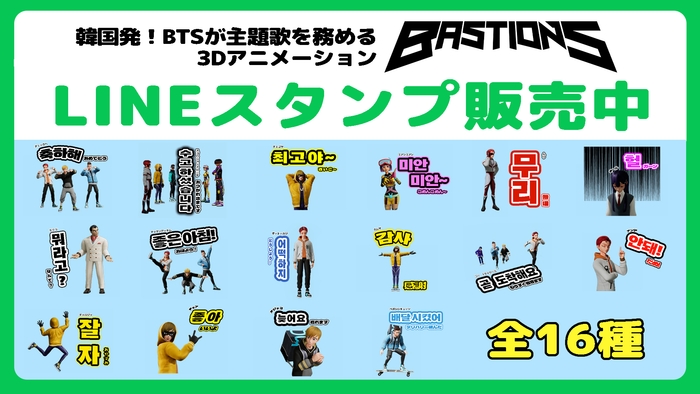 株式会社TBSグロウディア(東京都港区、代表取締役:園田憲)は、日本国内におけるコンテンツパートナーを務めているK-Animation『BASTIONS』が好評につき、追加での国内配信を決定しました。本作品はBTSやLE SSERAFIMらがOSTを歌ったことで話題となっています。さらに『BASTIONS』のLINEスタンプも発売しました。
