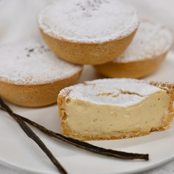 当店一番の人気商品です。コクのある北海道産クリームチーズとマスカルポーネチーズをオリジナルブレンド。カスタードクリームにはインドネシア産天然バニラビーンズをたっぷりと加えています。高温のオーブンで短時間に焼き上げることで柔らかな口どけに仕上げました。柔らかな口どけと優しいバニラの香りが幸せな気分にさせていくるタルトです。