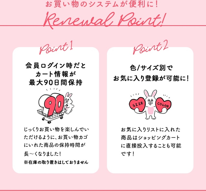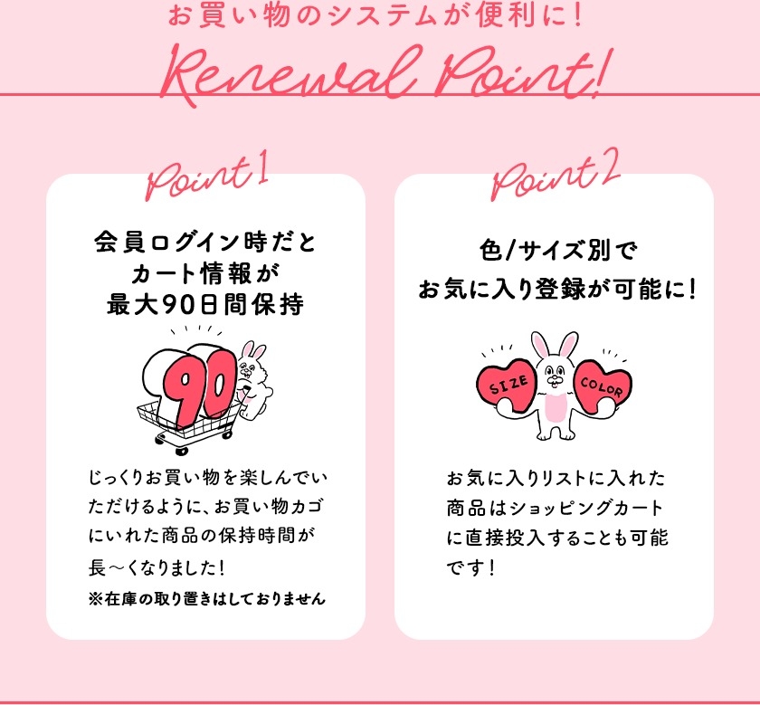 じっくりとお買い物を楽しんでいただけるように、お買い物カゴに入れた商品の保持期間が長くなりました。