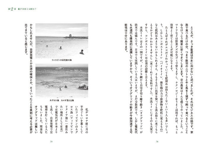 「自分の人生は、自分で創り出し自分で支えるものであり、それが一番幸せなこと。たくさんお金を稼いで、人から羨ましがられるような生活をすることは実は幸せではない」という考えに基づいた生き方が農FIREなのです。