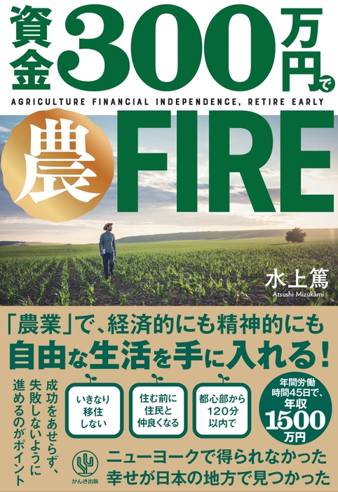 株式会社かんき出版(本社:千代田区 代表取締役社長:齊藤龍男)は、『資金300万円で農FIRE』(水上 篤/著)https://kanki-pub.co.jp/pub/book/details/9784761277024を2023年11月22日より全国の書店・オンライン書店等(一部除く)で発売いたします。