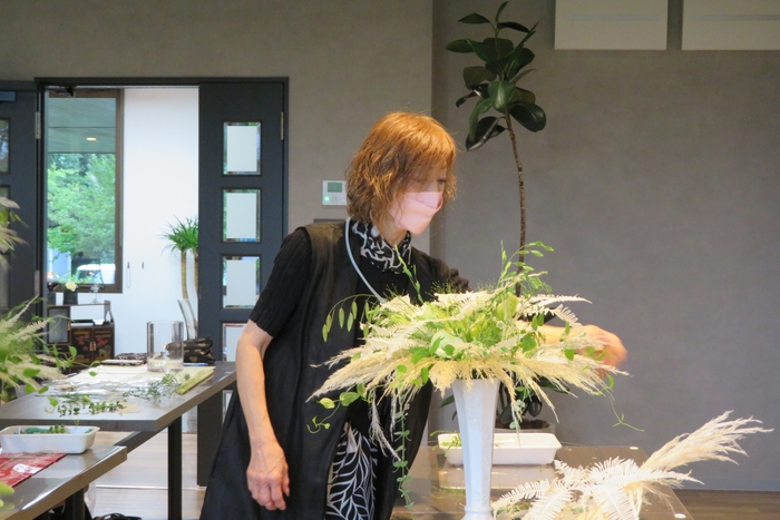 優しく丁寧にご指導いただき、受講生らは爽やかな中にも女性らしさを感じる作品と、先生の明るくエネルギッシュなトークにすぐにその世界観に引き込まれ、楽しく熱心に製作に取り組みました。