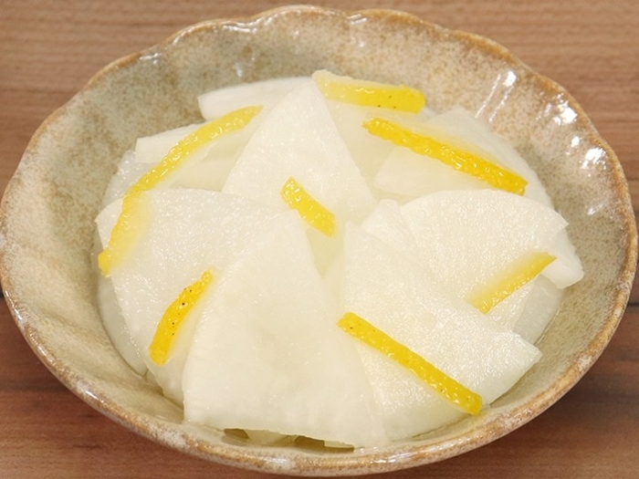 きめ細やかな肉質、歯切れの良い旬の国産大根を使用。ゆずの爽やかな風味が大根のおいしさを引き立てます。
