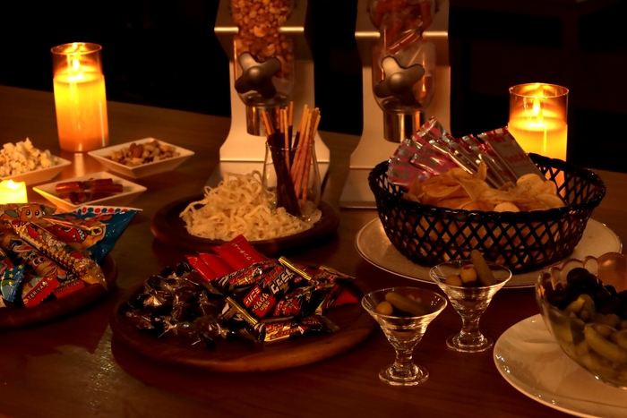 ナイトキャップバーは、LEDキャンドルライトを使用した暗く幻想的な空間を演出しています。この柔らかな照明は、お客様の目と心を穏やかに刺激し、深いリラックス効果をもたらし、寝る前のひと時を過ごすのに最適な環境で、一日の終わりを静かに締めくくることができます。