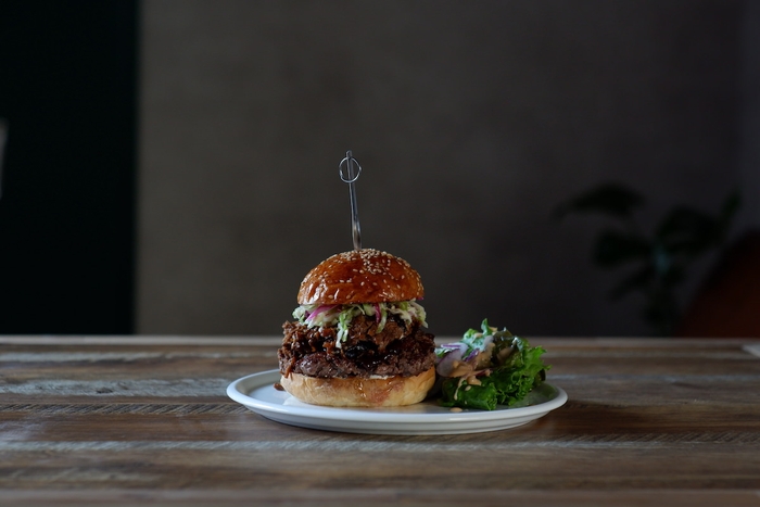 ホロホロに柔らかくなったお肉をフォークで細かくほぐし、コールスローとともにふわふわのバンズにサンド。