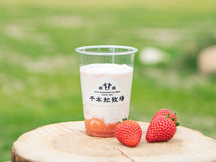 ・千本松いちご園で採れたいちごにミルクたっぷり。千本松のいちごミルク380円