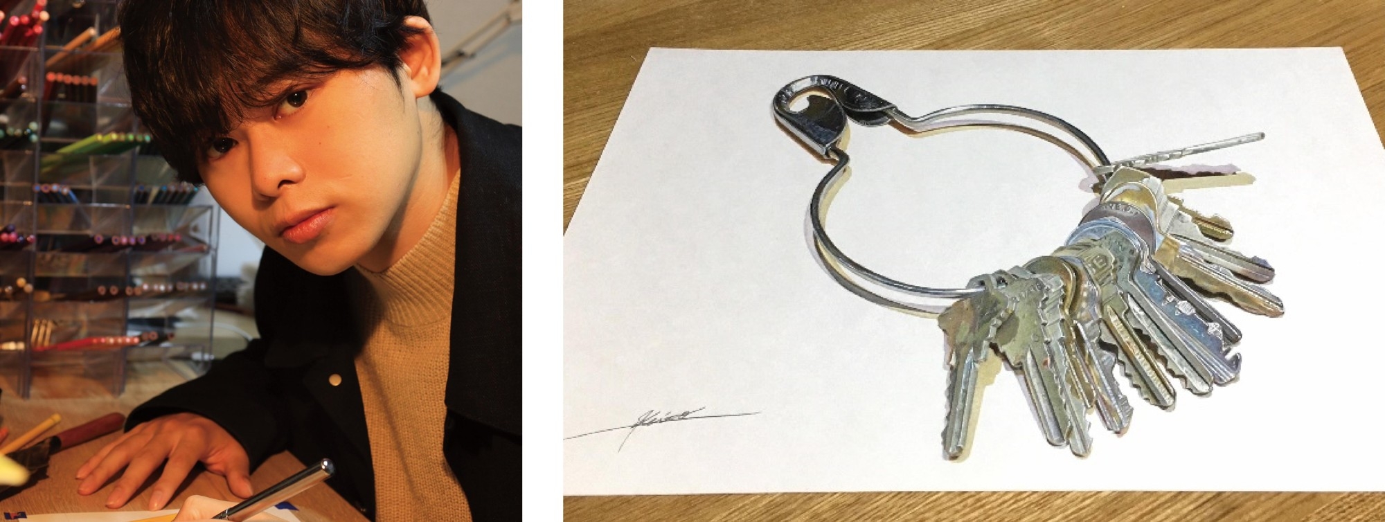 2003年生まれ、大阪府出身。中学生の頃から独学で色鉛筆画を描き始め、SNS投稿をきっかけに