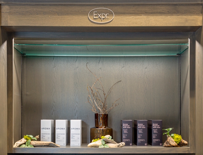フレンチカフェ&テラス「Expression Kawaguchiko」は、FSXが運営する初の実店舗です。これまでBtoBtoC (Business to Business to Consumer) の事業モデルだったFSXが、食とおしぼりを通じて、直接地域やお客様と繋がる場所として今年の7月に開業しました。FSXの製品やサービスを体験していただけるショールーム機能も兼ね備えた店舗設計になっており、実際に『AROMA Premium』の香りを確かめ、アソートBOXを手に取って購入いただけます。また日本最大級のおしぼり通販サイト「イーシザイ・マーケット」でも販売を開始します。