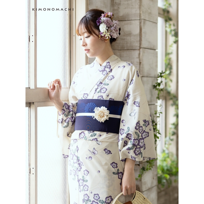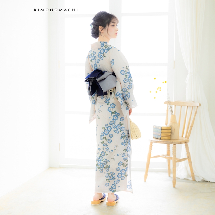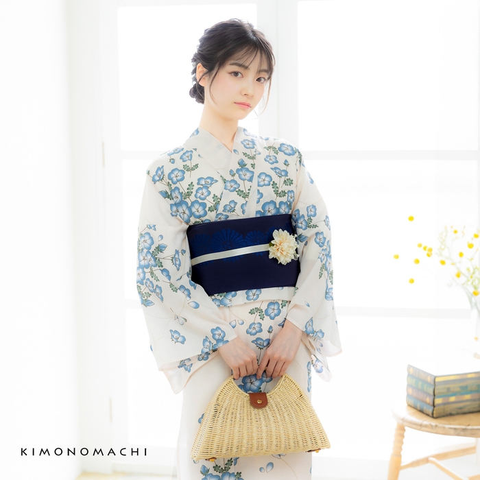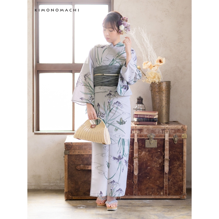 浴衣のみの販売です。帯や下駄、小物類は、それぞれ単品でお好みのものを購入いただいたり、お手持ちのアイテムを合わせて着用可能。